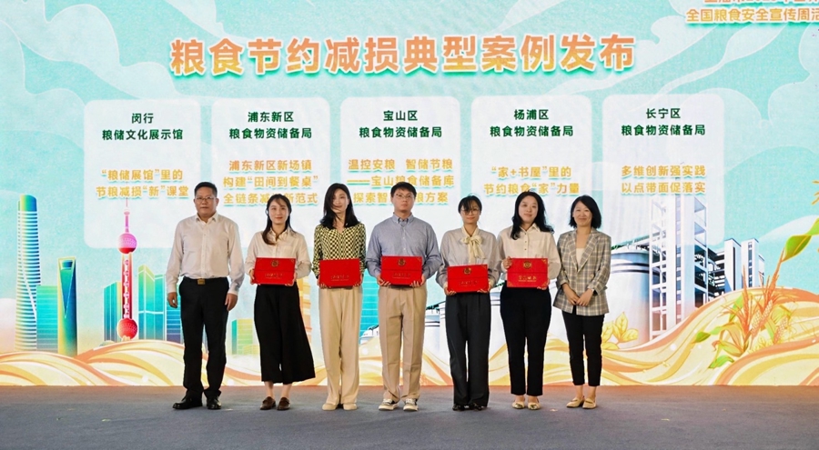 粮食节约减损是保障粮食安全的关键抓手。活动现场发布了5个粮食节约减损典型案例,并为其颁奖。这些案例覆盖粮食种植、储备、宣传、消费等全环节,为上海推进节粮减损提供了可复制、可推广的经验。