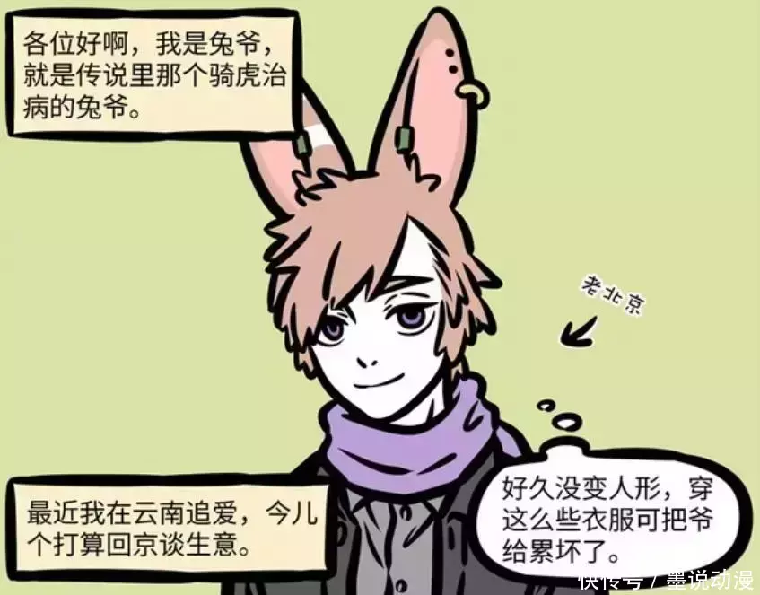 兔爷是《有兽焉》漫画中的重要角色,也是《非人哉》中的客串角色。兔爷在这里有人形态,而且比较帅气。兔爷是小玉的前男友,也是那个骑虎治病的兔爷。兔爷出现,那回头率还是很高。在回到北京之后,还遇到了小玉。